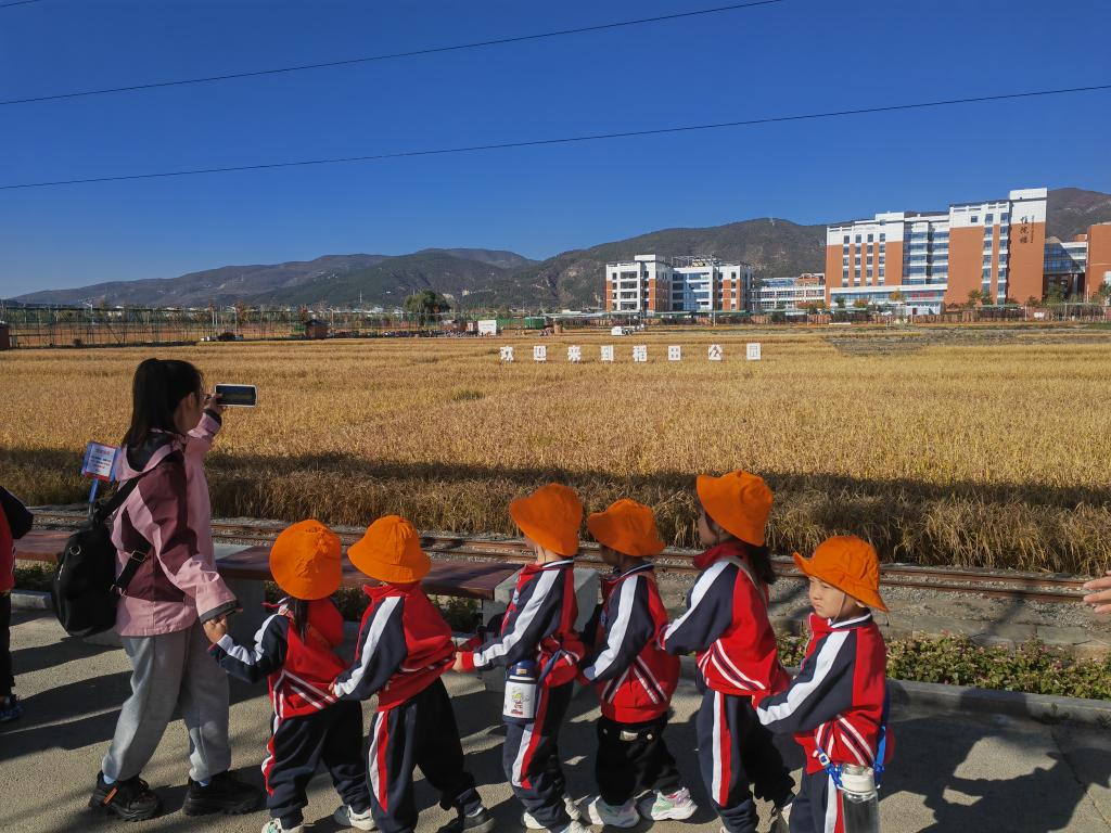 10月20日,幼儿园师生来稻田公园参观游玩。新华社记者 魏飚 摄