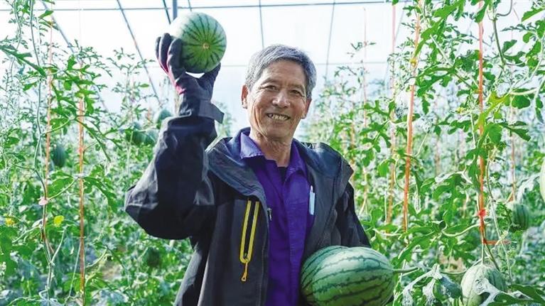 走进新区秦川园区现代农业产业园二期项目的“绿鸢”西瓜种植大棚,棚内一个个西瓜圆润饱满、色泽诱人,工人们正忙着采摘、挑选、装箱,一派繁忙景象。