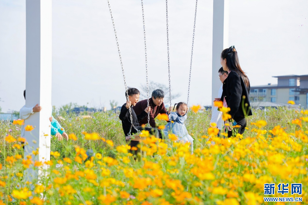 游客在花海游玩。新华网发 徐融摄 (2024年10月20日)