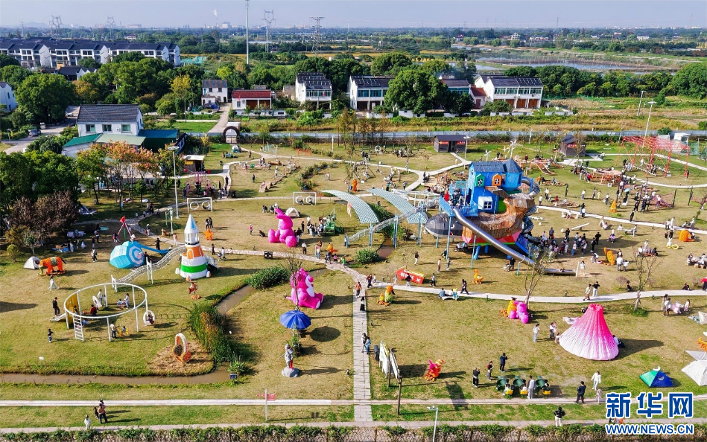 石淙花田喜事景区内游乐场周末游人众多。新华网发 徐融摄 (2024年10月20日)