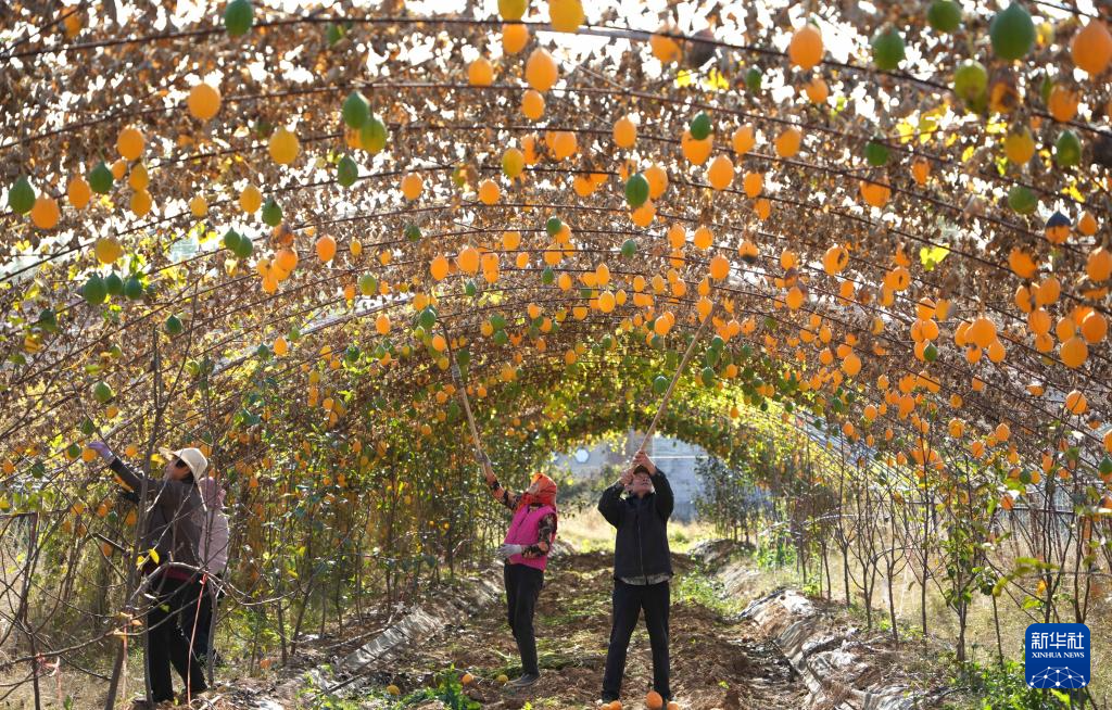 11月5日,在山东省新泰市刘杜镇门家庄村,村民收获成熟的瓜蒌。