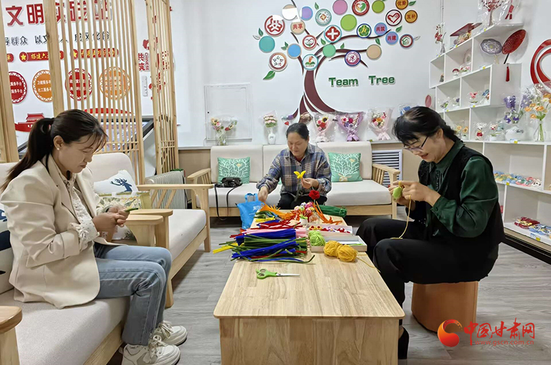 华亭市城市社区居民正在编织手工艺品 马研华/摄