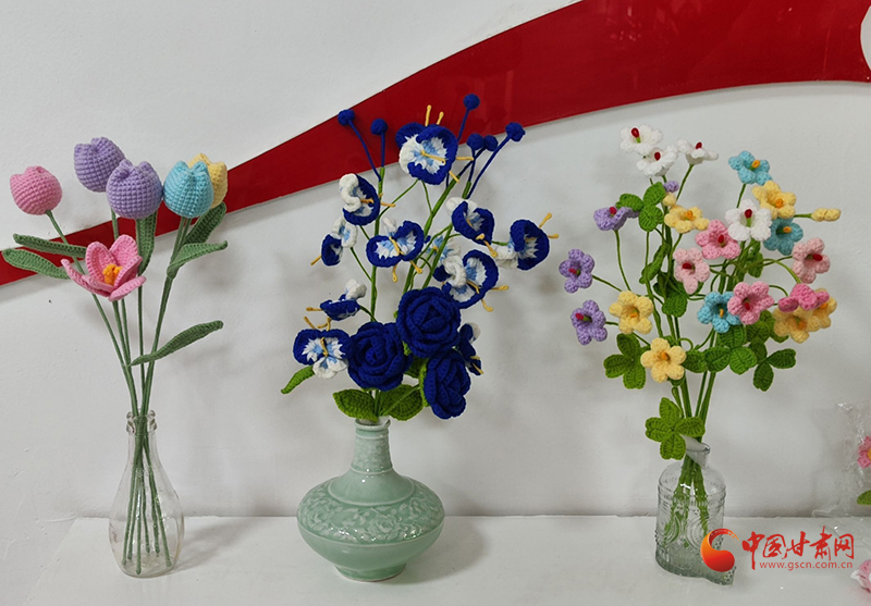 华亭市城市社区居民编织的手工艺品 马研华/摄