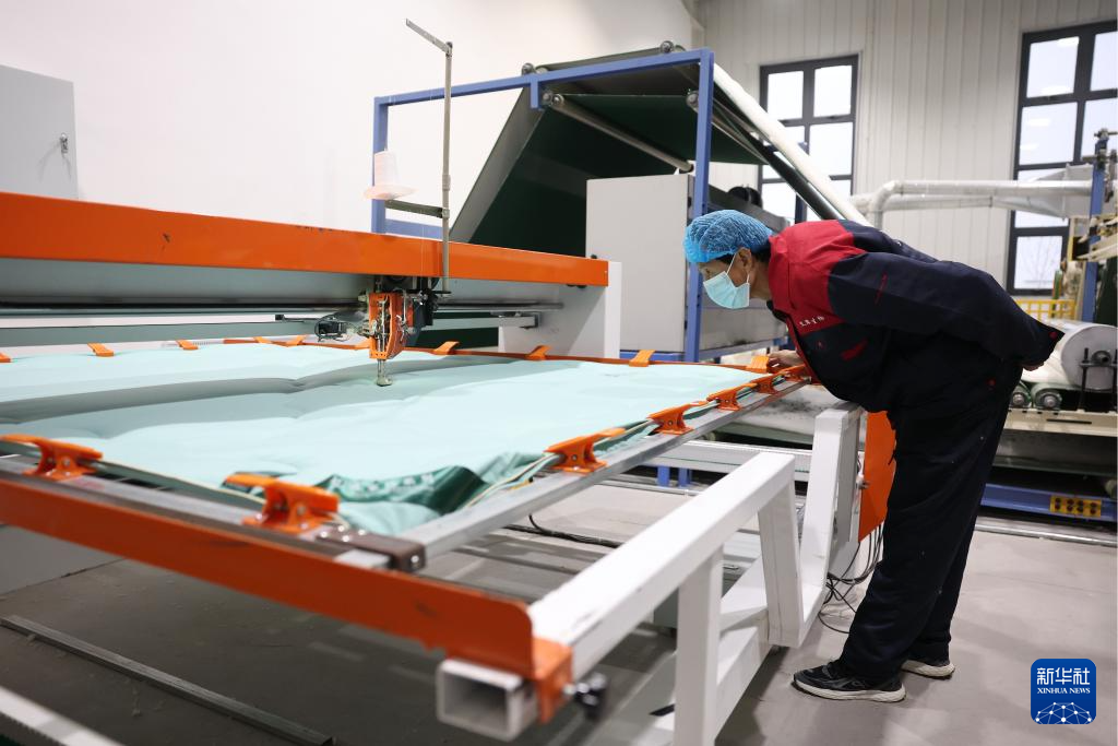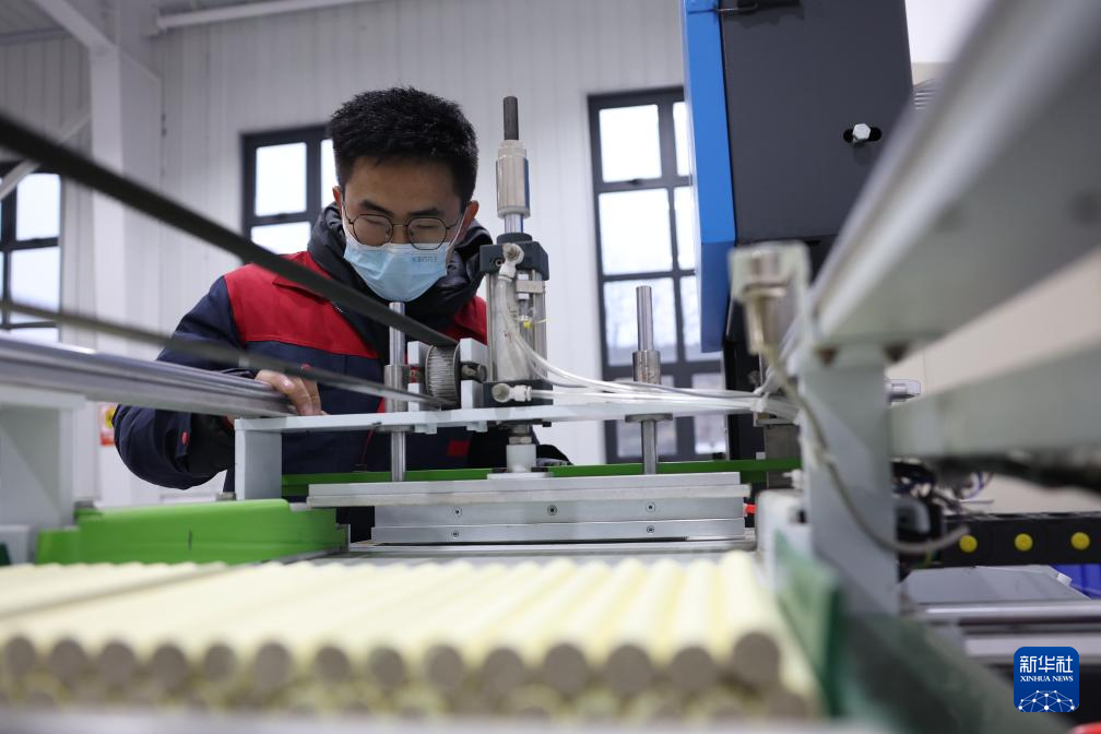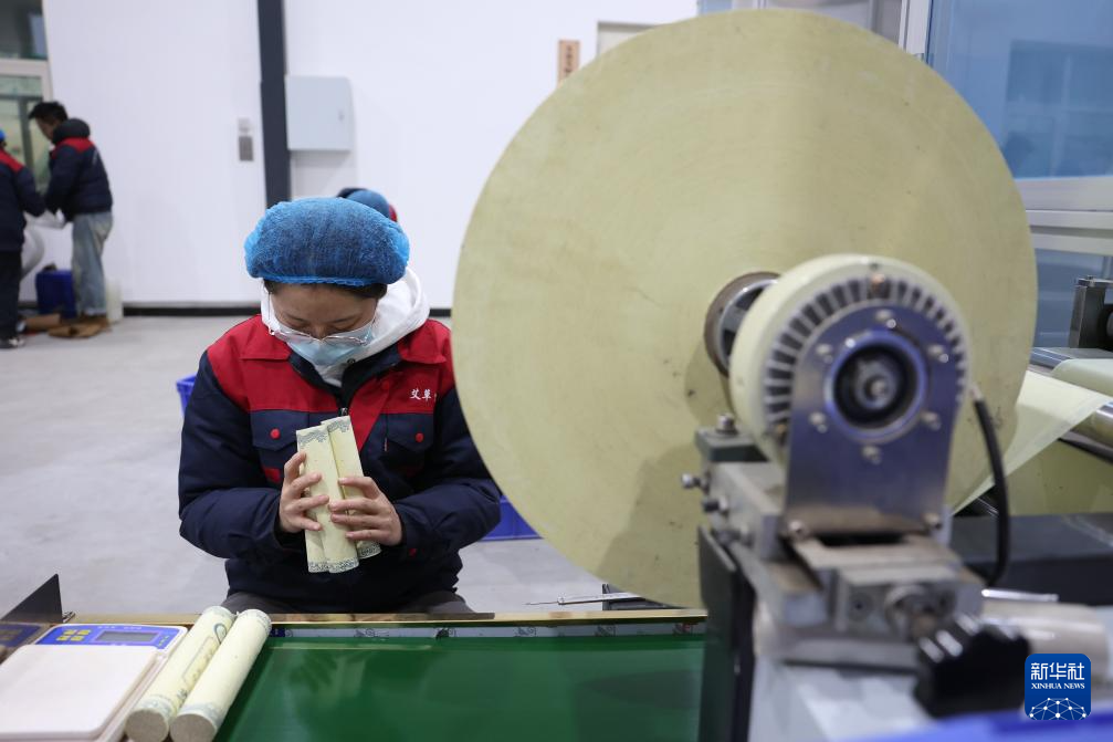 在灵台县独店镇张鳌坡村一家艾草生产加工企业,工人在生产线上作业(11月20日摄)。新华社记者 陈斌 摄