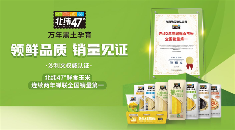 由于北纬47度种植的土地是有机土壤,决定了北纬47°玉米的营养高价值。与此同时,北纬47°以鲜食玉米为代表的产品,坚持保留玉米本身的新鲜风味,蛋白质含量则比普通玉米提升3%至6%。“每日一根北纬47°玉米,保持膳食营养均衡”,品牌旗下推出的鲜食玉米品类丰富,包含有机水果玉米、低GI水果玉米、有机白甜糯玉米、黑珍珠甜糯玉米等多种优质产品,以及低GI水果玉米粒等创新型、深加工玉米制品。其主打的鲜糯玉米、鲜甜玉米、东北香米等明星产品,适配都市多样化人群,长期霸屏消费者推荐榜单;北纬47°低GI水果玉米系列作为低GI检测证书的鲜食玉米产品,低脂轻卡轻负担,更适合老人、小孩、减肥健身及高血糖人群。
