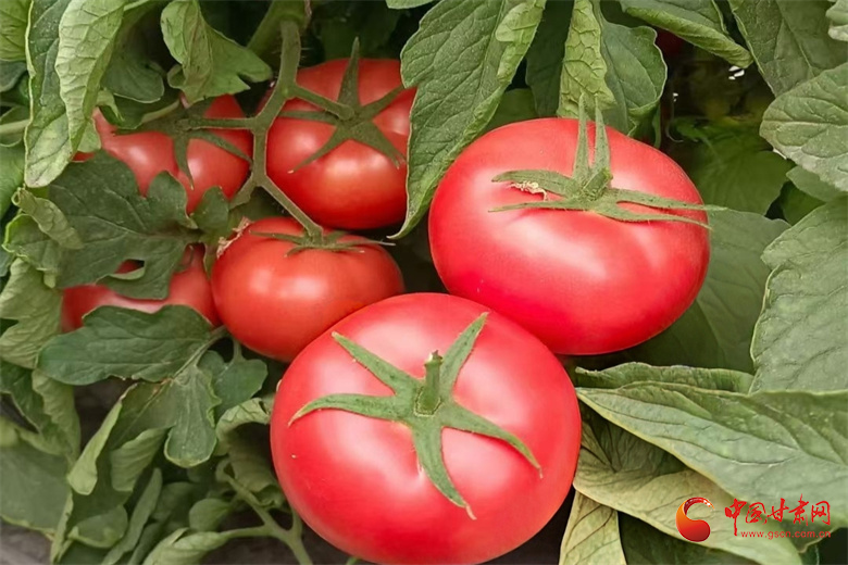 走进六三村种植户石玉梅的蔬菜大棚,另一番丰收景象同样动人。一人多高的支架上,绿油油的西红柿藤蔓交错缠绕,一个个色泽鲜亮、饱满圆润的果实像红灯笼般挂满枝头,果香四溢。“我们的西红柿品质好、口感沙甜,每天能接待五六波采摘游客,按照现在的市场行情一斤能卖5块钱,一棚利润预计能达到2万元左右。”种植户石玉梅介绍道。得益于合黎镇近郊区位优势和休闲采摘农业的兴起,石玉梅的大棚西红柿以“现采现卖、无公害种植”为特色,吸引了大量县城及周边群众前来体验,产品常常供不应求。