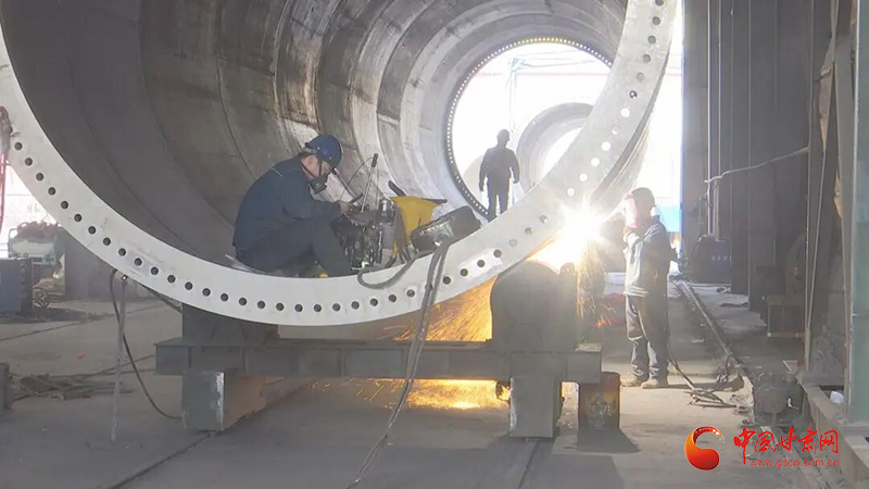 走进中国中车兰州机车有限公司玉门风电分公司,巨大的塔筒车间里焊花四溅,工人们正围着刚吊装完成的筒体进行环缝焊接。