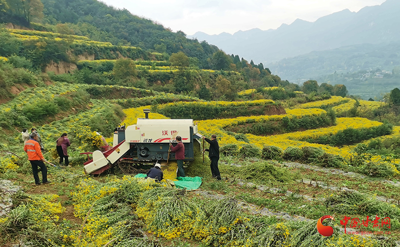 深秋时节,成县抛沙镇东罗村田野里的野菊花盛开烂漫。循着清雅的菊香,走进野菊花种植基地,昔日连片的撂荒地,已化身为层层叠叠的“金黄田”。田地里,菊花采摘机飞速运转,村民们来回忙碌穿梭,田野里一片欢声笑语,一派田园丰收的景象。